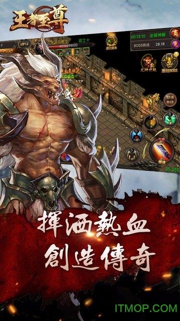 《王者至尊》是一款传奇题材热血MMOARPG手机游戏。手机千人同屏,再现万人攻沙。游戏秉承传奇经典,100%还原经典传奇玩法,BOSS战、攻城战、个人副本、大型活动、自由交易,结合特色育成系统,创新的技能升级和分支,突破传统RPG约束打造极致互动新世界,让你爽虐PK,纵横称霸!