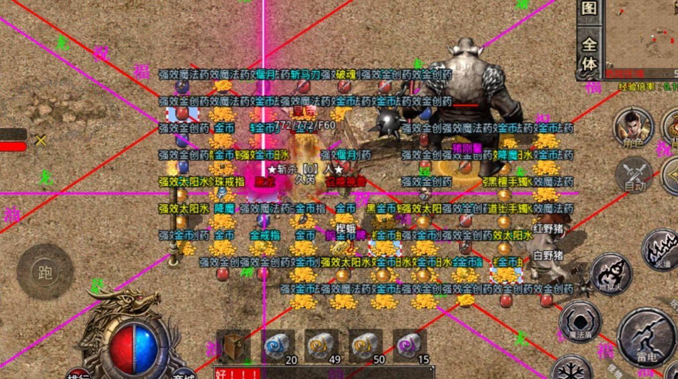天猫复古176为玩家带来经典复古的传奇玩法,经典的画面风格,各个场景都非常的精彩,还原诸多版本的玩法,游戏内无任何的暗坑和套路,尽情地享受刀刀暴击的爽快体验,获得遍地光柱的震撼感受,书写属于你的传奇冒险旅程。 天猫复古176玩法介绍 1.散人上去优先....