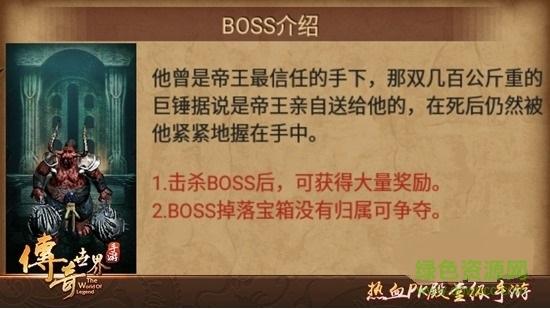 对"传世"老玩家来说,尸霸可以说是诸多BOSS中"最熟悉"的面孔.尸霸的原型是上古传说中的刑天,生前是帝王手下最忠诚的将领,在一场大战中力战而死,临死时手中紧握的双锤就成为尸霸最霸道的兵器.在众多BOSS中,尸霸堪称"入门级",然而一双大锤拥有让人短时间丧失行动能力的麻痹效果,使得很多玩家吃过大亏,不熟悉的手游玩家要小心了!