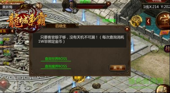 BOSS刷新、被击杀,系统都会有提示,查询BOSS信息可以到NPC【百晓生】查询: