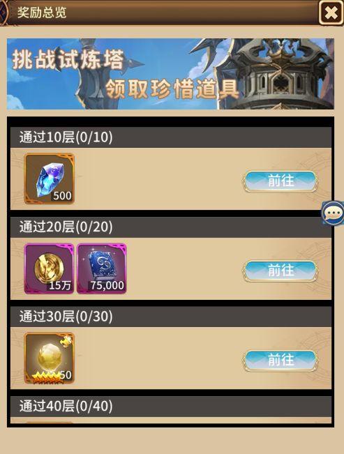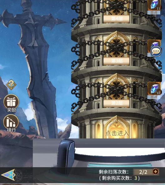 1.神之塔首通可获得进阶石奖励,整10层额外领取一份通关奖励