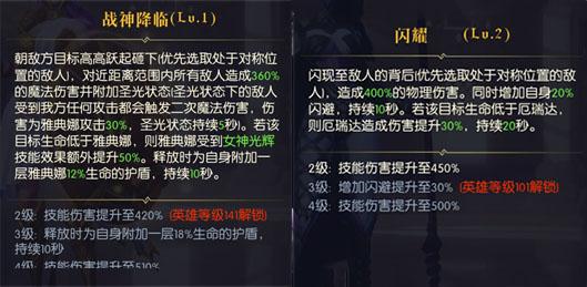 比如说:左图为S级英雄【雅典娜】的技能,右图为A级英雄【厄瑞达】的技能