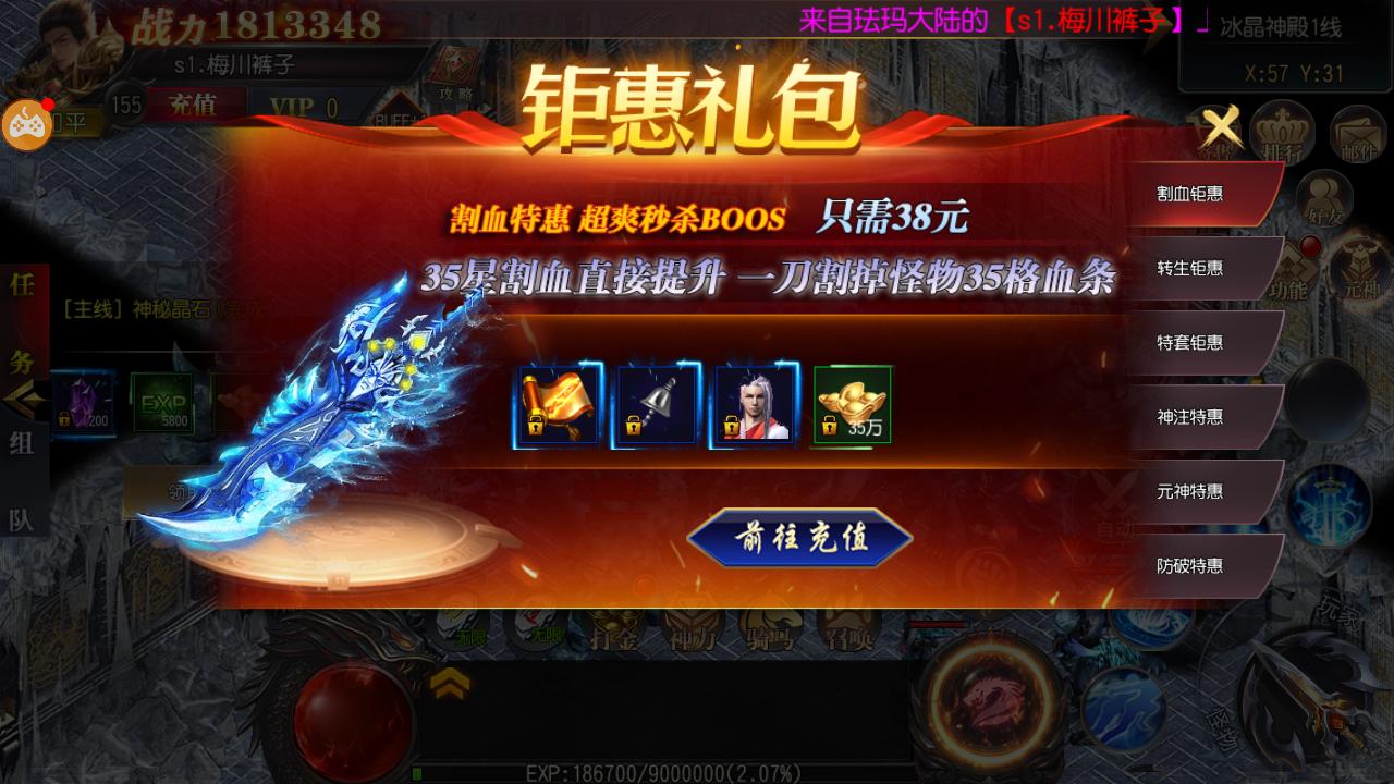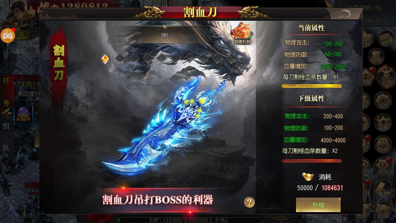 1、割血功能为本游戏快速打怪功能,激活或升级此功能,可快速割去怪物超大血量