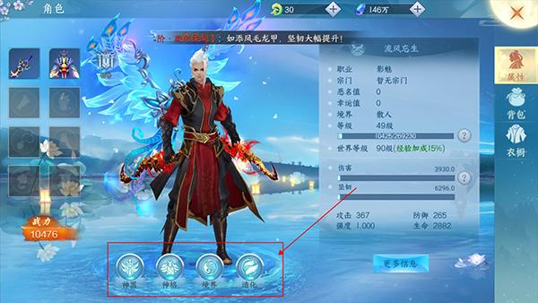 3、开启挂机战斗后,玩家主要操作就是给主角提升战力,玩家可以通过主角页面给主角穿戴神器、提升境界等。