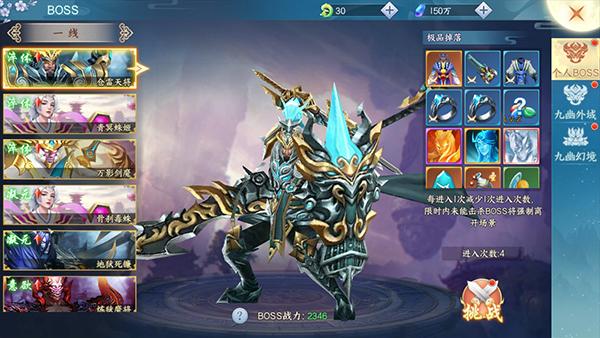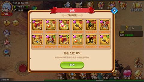 6、玩家还可以进行boss挑战,有个人以及组队boss挑战,可以获取装备、幻神技能等奖励。