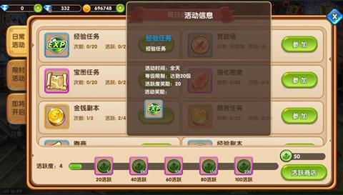 玩家等级达到20级就可以开启金钱副本喔 ,海量金币在向小伙伴们招收噢,赶紧行动吧