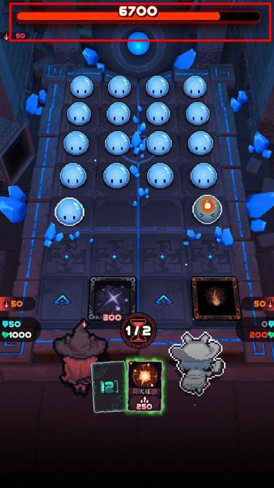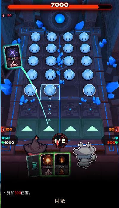 1、在游戏中,你需要使用卡牌来和版面上的敌人进行战斗,任意拖动卡牌到版面上就可以使用