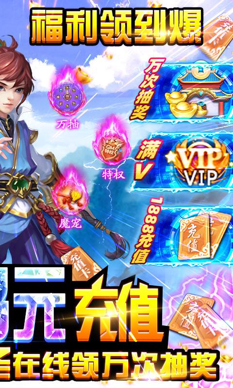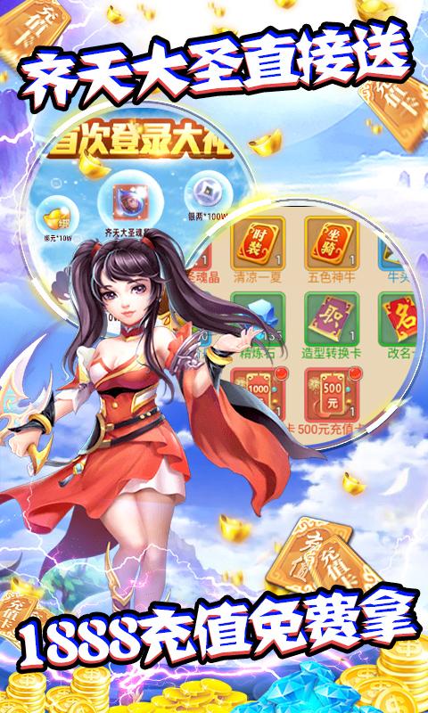 一款经典回合制手游,上线即送vip27(满v),在线得万次抽奖,还有精美时装和炫酷坐骑相送,开局就送SSSSR神宠六耳猕猴,登录送超强伙伴齐天大圣,全民刷BOSS狂爆元宝!上线送1888元充值,百万元宝福利免费送,海量元宝领到手抽筋!