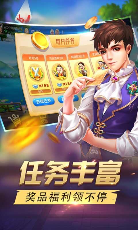 同城游逮狗腿手机版是一款棋牌类游戏,同城游逮狗腿手游也叫五人斗地主,是一款主要流行于安徽六安一带的扑克游戏,采用三副扑克牌、五人竞赛、找朋友的打法