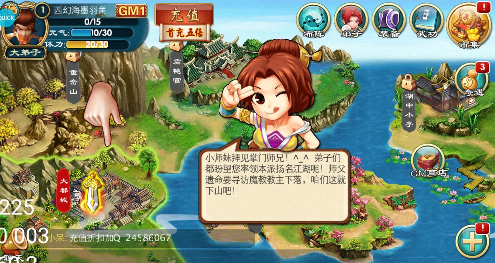 《武侠Q传-送巅峰开局》是一款可爱武侠风路线的新派卡牌游戏。故事发生于魔教乱世的年代,许多武林正派为了抵抗魔教教主而两败俱伤后,玩家所属门派的师父也因此次战役而重病身亡,身为最优秀的大弟子只好师承掌门之位,重建门派,闯荡江湖,培养许多弟子,壮大声势替恩师报仇,这就是玩家在游戏中的任务。