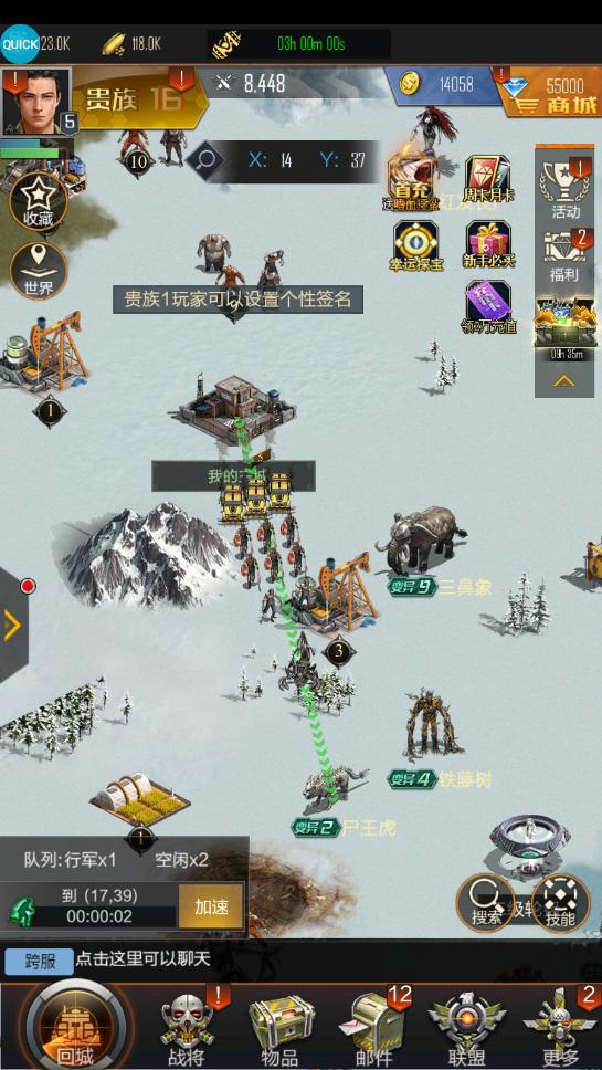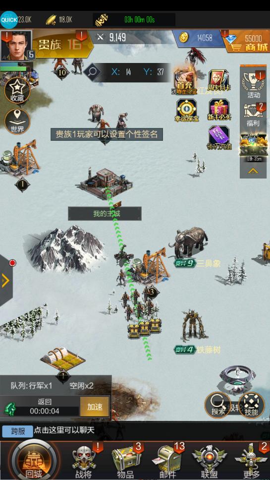 非常重要的一点,一定要选好联盟加入,因为如果没有联盟的协助,一个散人玩家是很难再外生存的,这时你可以通过游戏内获得过的联盟迁城到盟主的身边,组建大的团体,共同发展,然后就可以建造联盟堡垒、联盟矿、联盟仓库和联盟箭塔等。