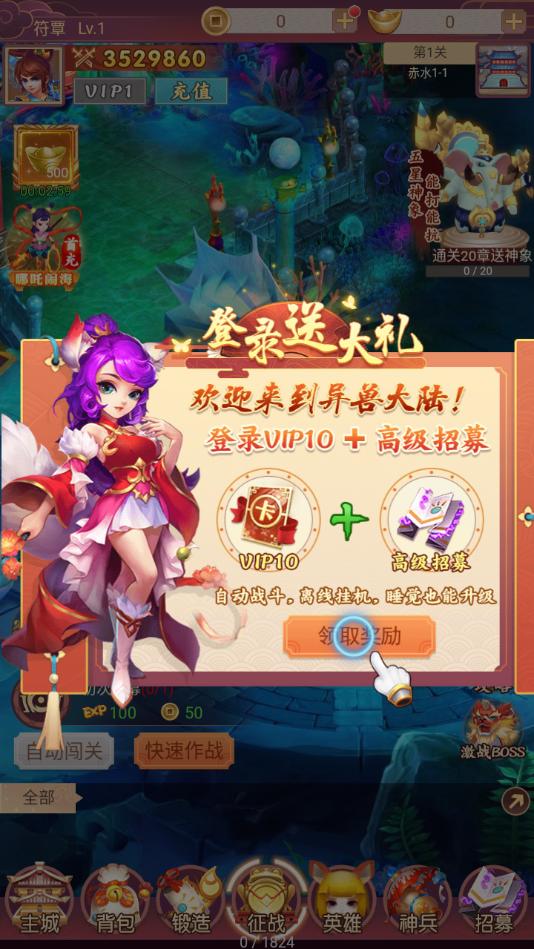 编辑点评:上线送vip10,元宝 18888,金币10万