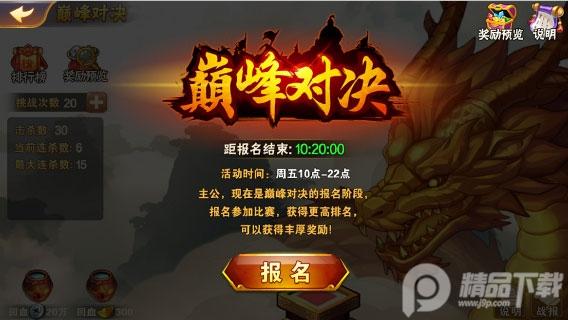 高手们都将集结于同一战场,实打实的1V1,面对面的激战,是时候为自己而战了,更是为全服荣耀而战!现在我就跟大家详细介绍,巅峰对决的玩法,助你登顶。