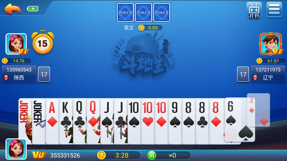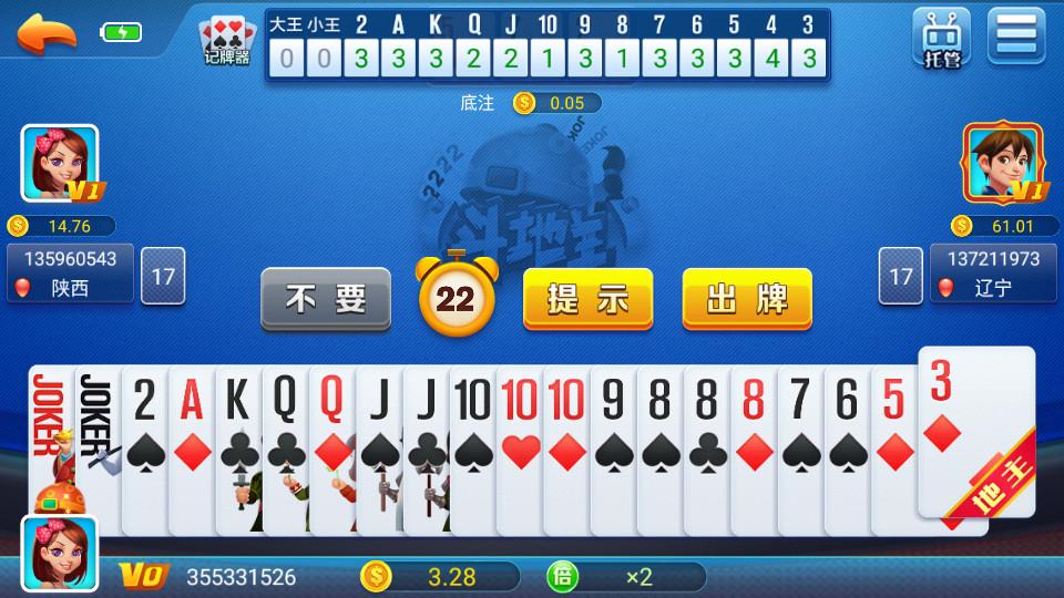 1.游戏规则,斗地主需要三人进行游戏,游戏需要一副54张的扑克牌。在游戏开始前,会先抽出三张底牌,三张底牌最后在选出地主后归地主所有。每人分得17张牌,然后三人依次进行抢地主,最后选出1个地主,两名农民。