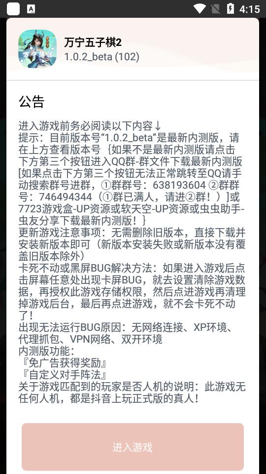 大家都知道抖音上有一款很火的游戏叫万宁五子棋,该游戏以魔性玩法受到了很多玩家们的喜欢,而今天小编给大家带来了他的第二部万宁五子棋2,这一季的玩法和上一季类似,不过全新加入了七星阵、超斗阵、归元阵、五雷阵·阴五雷这几个阵法,每个阵法用法各不相同,和其它阵法相生相克,似乎是想维持一下游戏平衡,还有独居创意的三人模式来袭,独创的3人玩法,还新增了排兵布阵模式玩法,该玩法能摆出特定形状的棋子,触发对应的阵法,同时重制了连招模式,让玩家每回合可以打出俩个招法,并且重复抽取相同招法还可以升级,使之策略性也更强,也更加混乱,让你体验不一样的五子棋