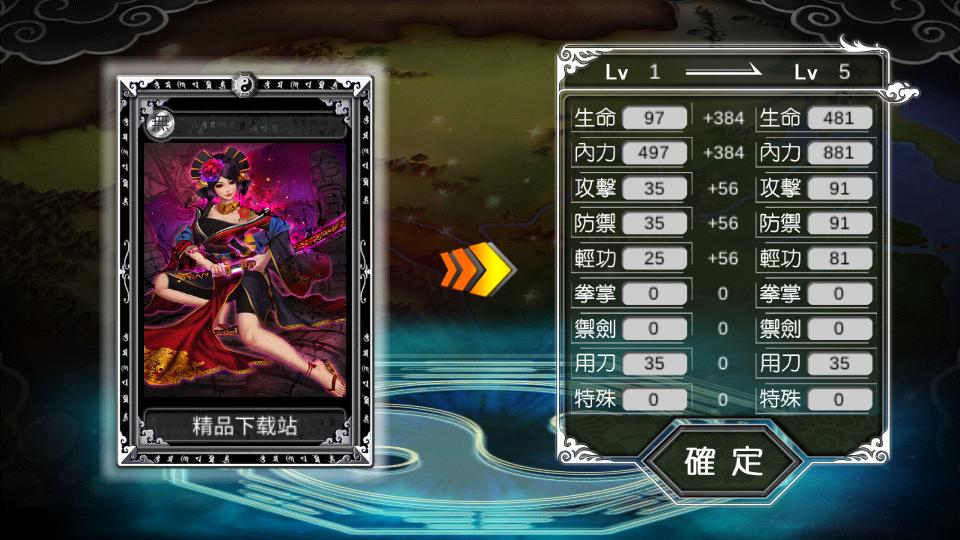 武林这款是一款卡牌收集的半即时制战棋游戏,流程中绝大部分顶级武功都有掉落,没有VIP系统,0氪微氪也能获得完整的游戏体验。