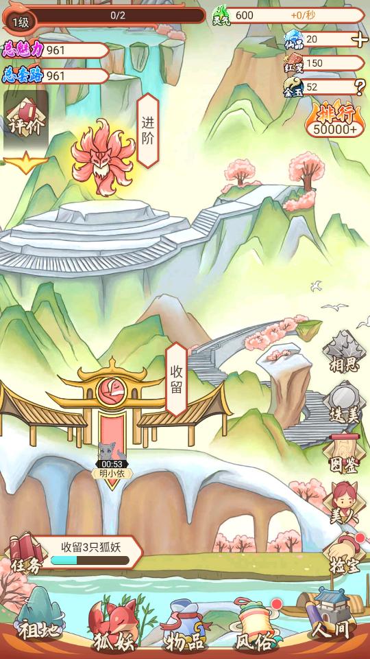 1、带上你的小狐狸游历人间,体味人生百态,上百种奇遇事件等你来解锁;