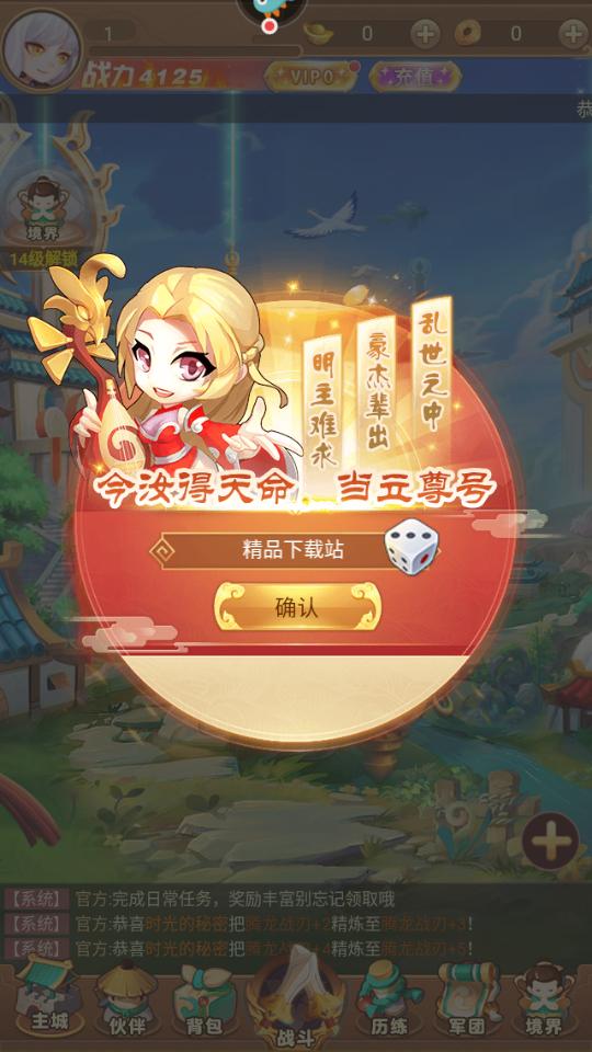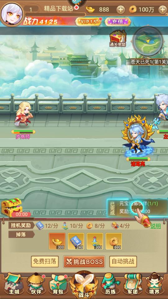 主线关卡中通关也可以获得大量的资源。每通关一个章节就能拿到元宝和装备奖励,还有关卡奖励领取伙伴哦。