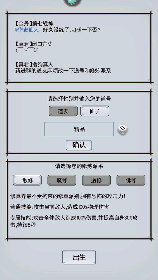 战盟修真群游戏正式更名为战盟游戏,它是一款以修仙为主题的文字放置类游戏,用火爆网友代入,幽默搞笑的剧情融入,玩家在游戏中体验沉浸式的文学阅读体验,是个非常现代化的修真小说mud文字放置游戏,有兴趣的可以试试。