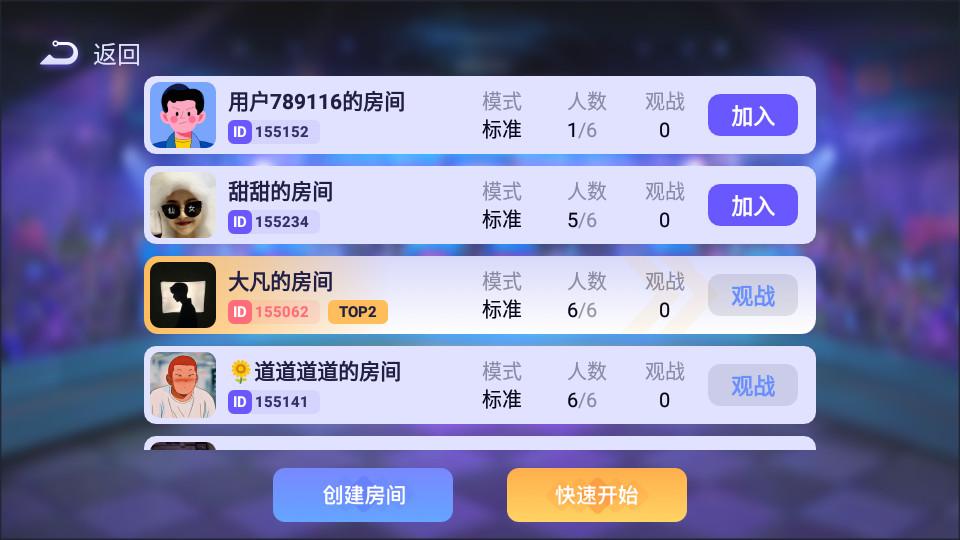 1、进入游戏,可以直接选择一个房间加入,每个模式的玩法有所区别,但都大同小异。