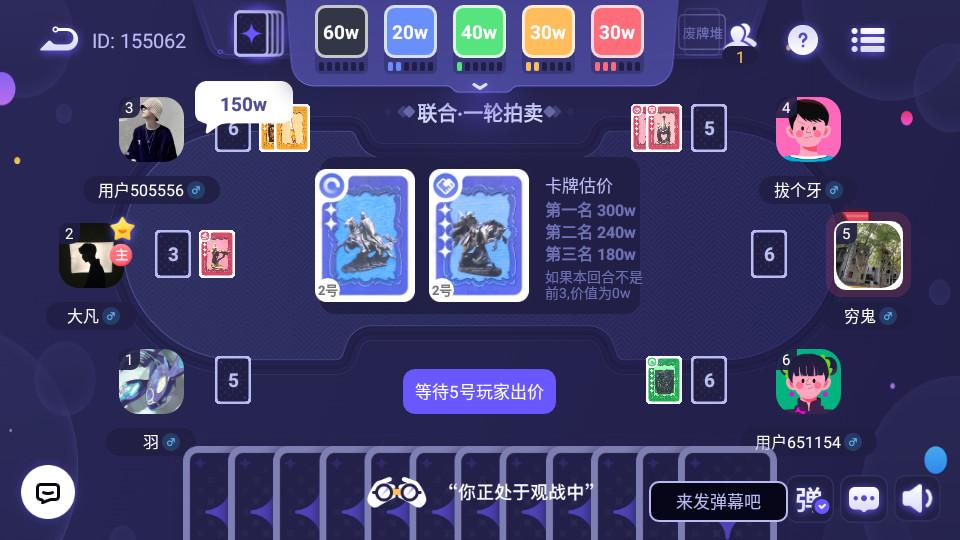 2、游戏的操作难度不是很高,感受更多的精彩,你需要一定量的手牌以及资金才能前期在拍卖场上傲视不败;