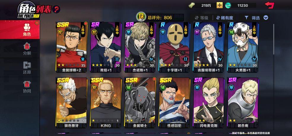 1.阵容配置:金属球棒.冲天好小子.蛇咬拳斯奈克.微笑超人.重型金刚.火男面。金属球棒的单体输出能力很强,可以快速集火敌方主力角色,阵容性价比还是很高的。