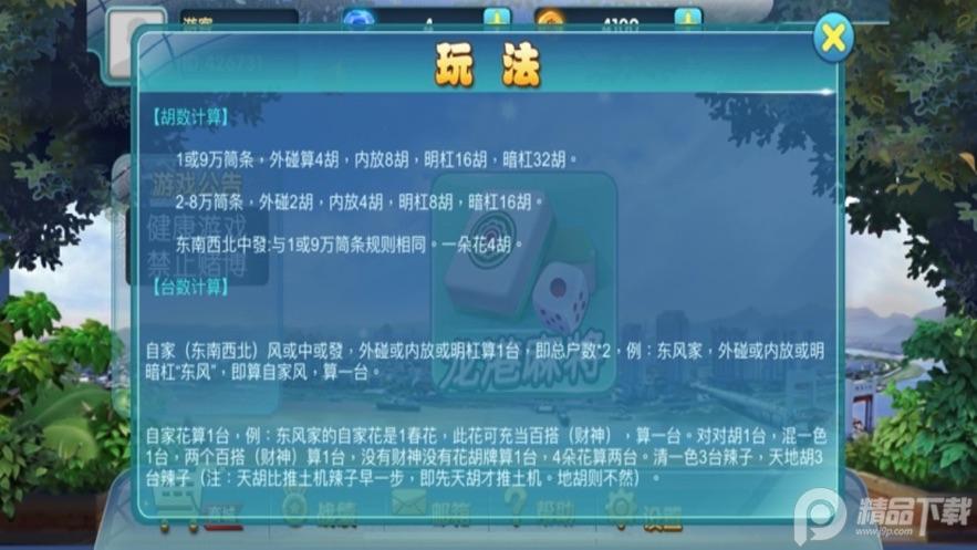 2-8万简条,外碰2胡,内放4胡,明杠8胡,暗杠16胡康游戏