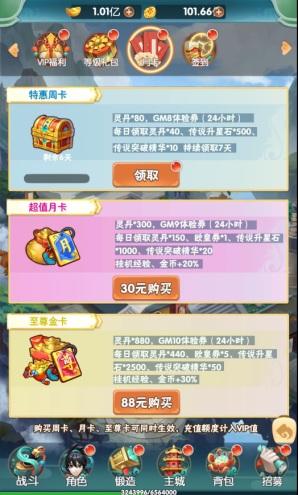 月卡是否算VIP经验(是/否 ):可忽略(上线送满V)