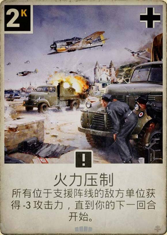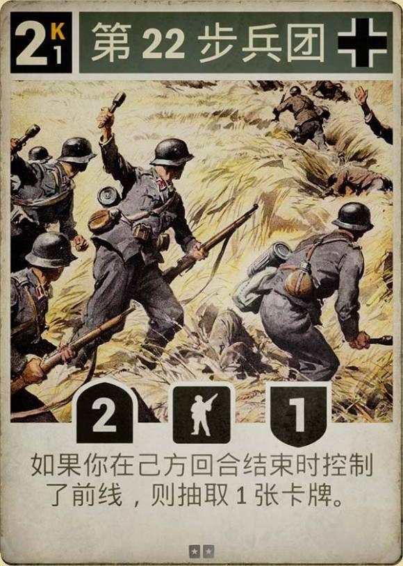评价:可以有效防止美国大兵上前线而逐渐形成优势,德国对大件的唯一解牌,但是使用难度较高,也容易被对手识破,也不能算太强