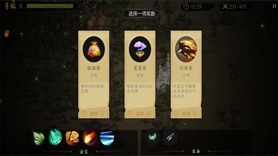 玩家将面对如海潮般涌来的妖兽,搭配运用各类法宝在战斗中取得胜利。