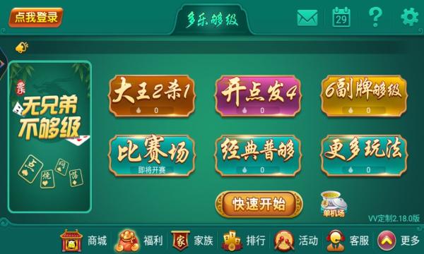 多乐够级是一款非常有趣的竞休闲牌类游戏,它拥有丰富的游戏玩法,让玩家可以在游戏中体验到不同的挑战和乐趣。