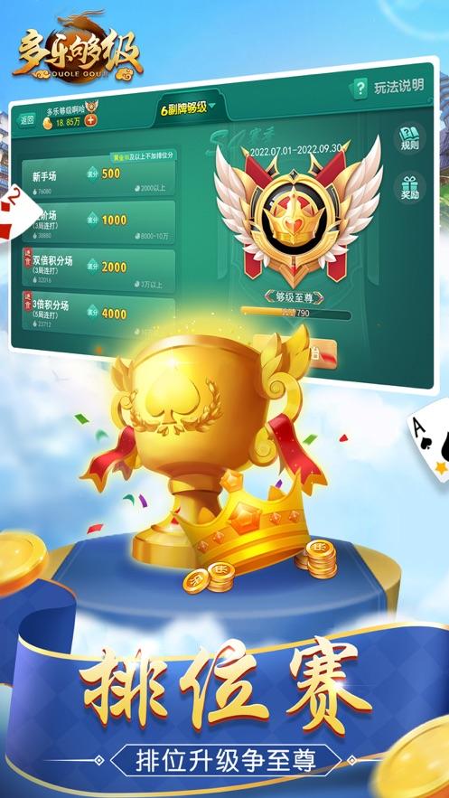 总之,多乐够级是一款非常有趣的扑克牌游戏,它不仅能够让玩家感受到游戏的乐趣,还能够增加玩家的社交圈子,非常值得一试。