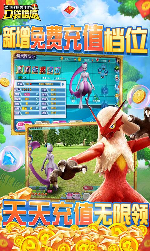 游戏精灵大部分可以免费捕捉,前期的难点就是精灵的生命值较大,战斗有些困难,进入游戏可以先领取一个至尊精灵超梦,游戏登录还送百抽,进行抽奖运气比较好的话可以获得一个极品精灵,然后按照主线进展,领取主线的奖励。先培养一个主要的精灵。精灵的属性很重要,突破,亲密度,升星都会影响着培养方向。豪华首充奖励一个Mega烈焰超梦,同时可以开启金币和精灵经验跟海量道具,培养的性价比属于最高。游戏的养成点比较多,最好按照战力提升的优先级培养,这里推荐突破和升星这两点,顶级精灵也可以合成获得,基本都可以肝上去的,这款游戏非常好玩还不氪。值得推荐