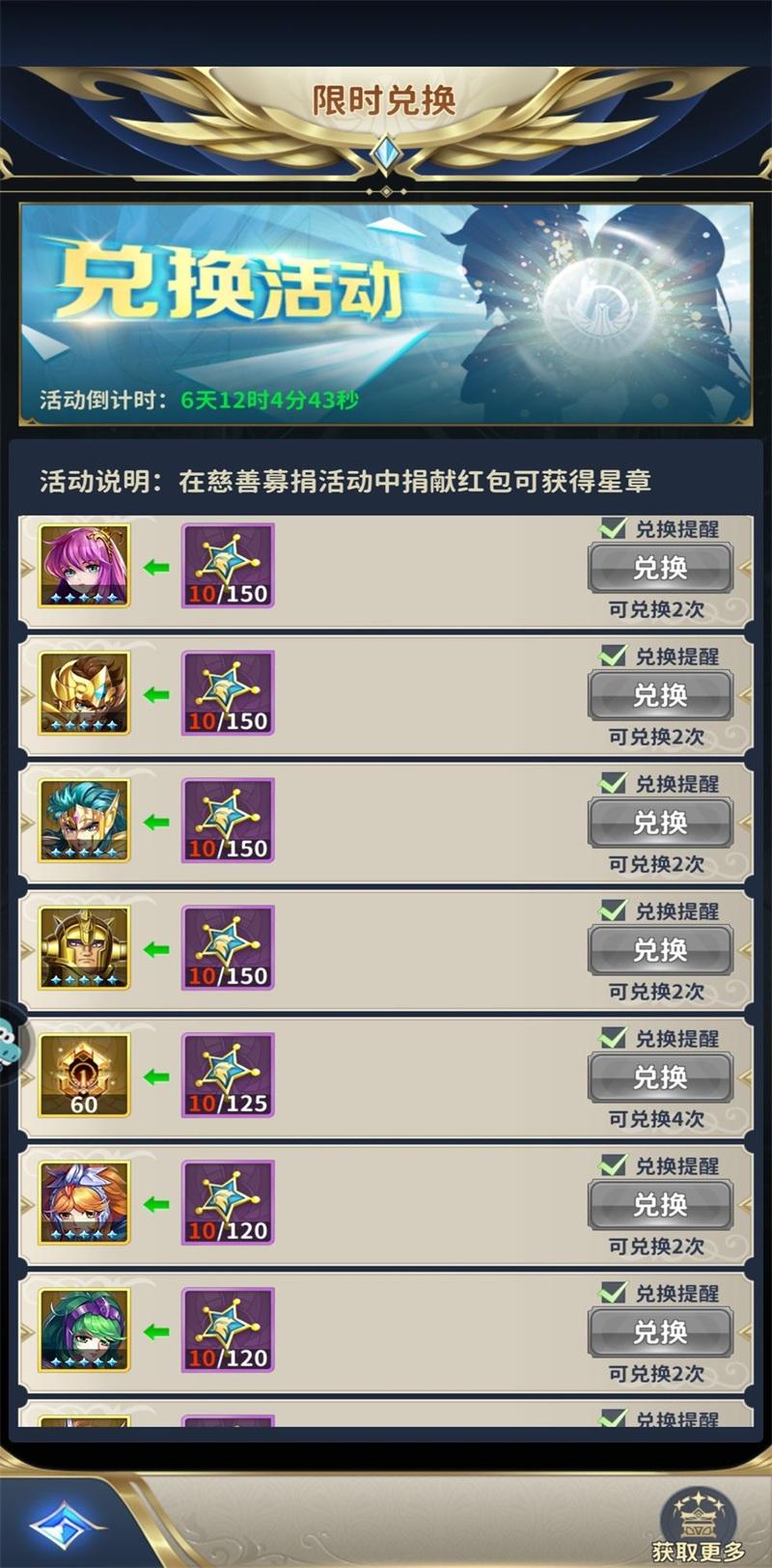 4.黄金白鸟座冰河可通过限时星域礼包和限时兑换获得(兑换资源包括:公会币、圣域币、勇气徽章、神魂币)。