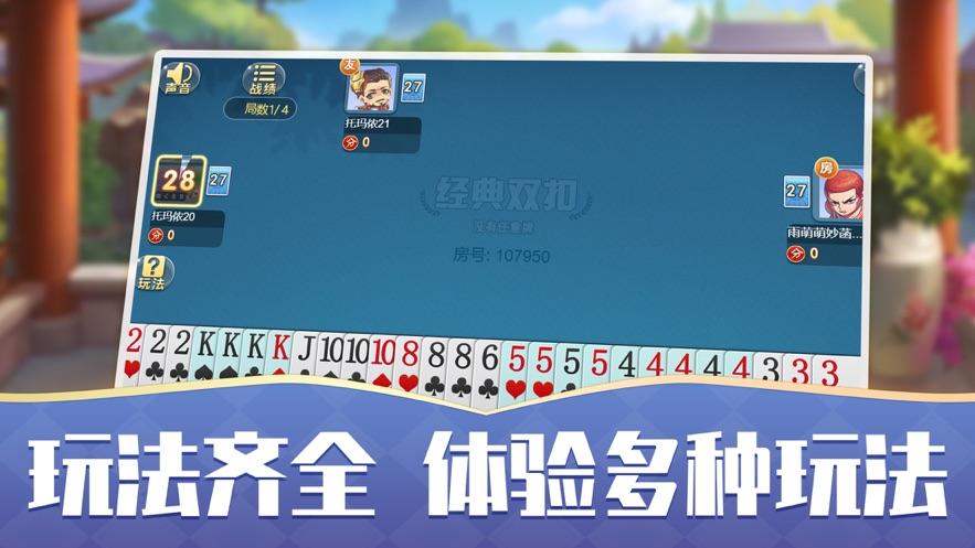浙江一带非常有名的类似跑得快的一款扑克游戏,浙江双扣游戏大厅中包含了多种丰富的玩法,具有本土特色内容,全棋牌覆盖,全玩法体验,多种模式可以选择,体验非常不错。