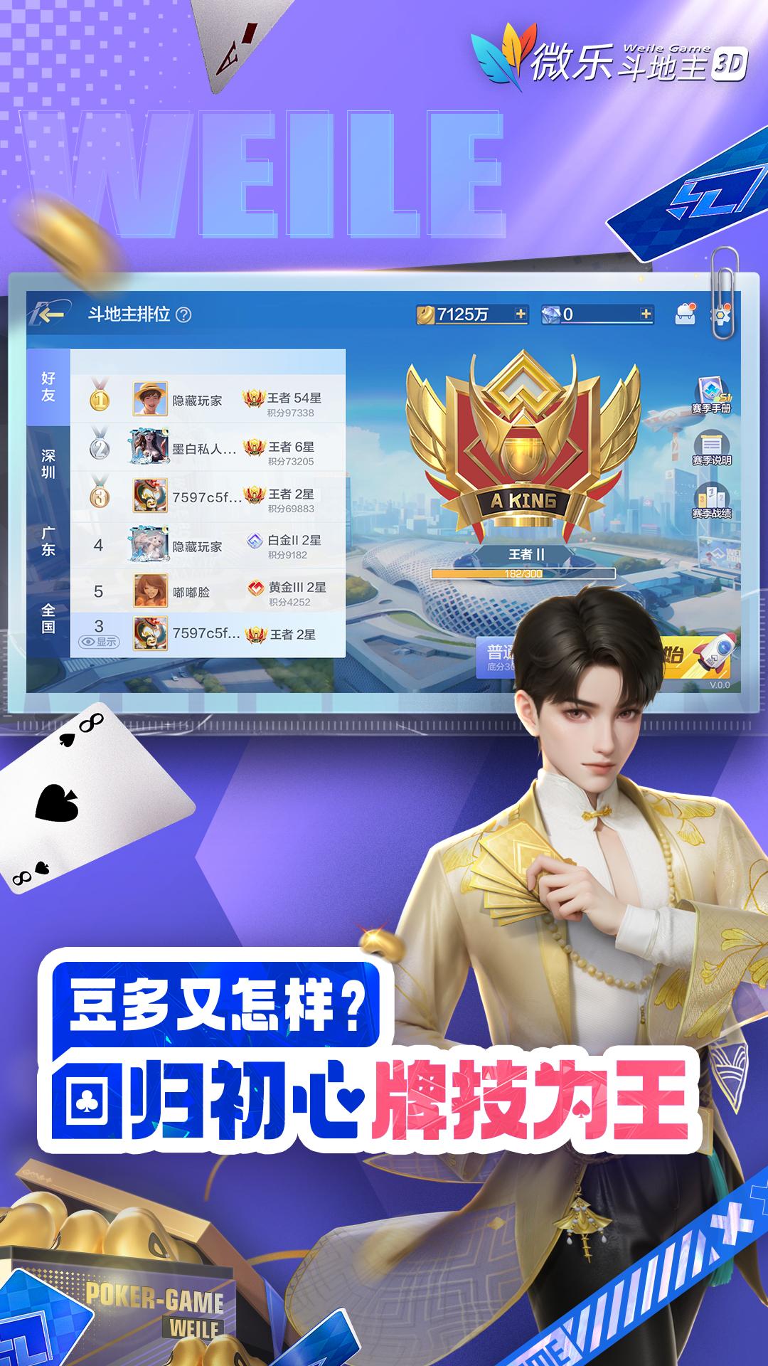 全新3D版本的上线为经典游戏注入了新的活力和创意,丰富了游戏内容和玩法,同时保留了经典规则,让玩家能够在竞技中感受到游戏的精髓和乐趣。如果您喜爱斗地主类游戏,想要体验更加丰富和有趣的游戏内容,那么不妨尝试一下这款全新3D版本的《微乐斗地主》