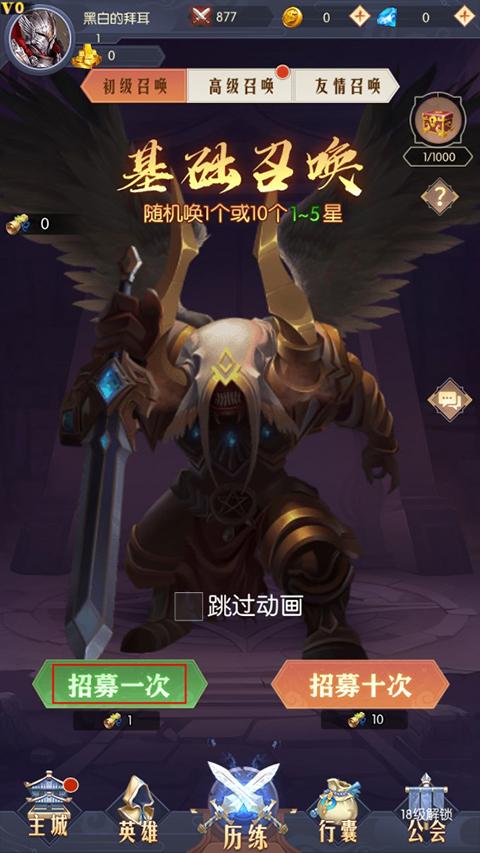 1、进入游戏后,需要先招募强力英雄,组建高战力队伍。