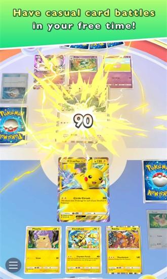 精致画面:清晰游戏品质搭配的华丽特效画面,努力养成自己的卡组享受宝可梦竞技。