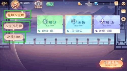 3、其中八宝牌模式中还有八宝万花牌、决战510K玩法可以选择。