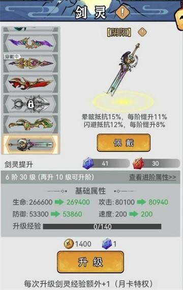 1、剑灵升级