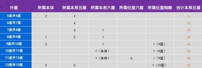 升星:是需要本体和本系的英雄,专属的本系路线,还有多星的英雄,专门的解锁多个超强的输出英雄。玩家可以进行升星,需要消耗的英雄是比较多的,查看最新的材料表格,就是可以查看最新的升星材料。上面的表格都是默认有一个本体的,玩家可以按照上面的表格还有进阶石数量,可以专门的进行英雄的升星。