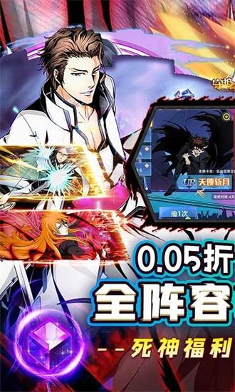 以经典漫画作品《死神》原著剧情为游戏背景的卡牌格斗类游戏,送全阵容死神,全部充值0.05折,福利应有尽有,十年经典永不完结在此带领玩家们感受死神世界的热血经典,极度真实还原动漫人物战斗表现,超华丽的招式攻击享受最真实的打击画面,拥有丰富的玩法元素、不肝不氪的游戏特点以及精彩刺激的战斗场景,全方位的为你提供作为独到的游戏体验。