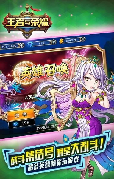 王者与荣耀唯一正版手游开始全新的冒险乐趣,卡牌世界的英雄召唤,属于你的荣耀战斗方式,副本BOSS激情无限,加入全新的对决之中,开创一个新的卡牌世界,精彩战斗等你来袭!