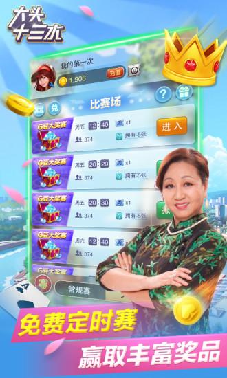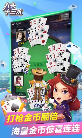 大头十三水360版最具人气的棋牌十三张玩法,游戏加入了比赛系统,让你从百人之中脱颖而出,利用高超的技术获得冠军,体验最舒服的手机版十三水,快到下载亲自体验游戏吧。