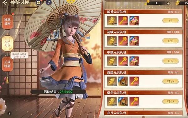 推荐礼包:元灵特惠,新秀元灵礼包,初级元灵礼包及中级元灵礼包,其中初级及中级可购买10次,按需选择即可。
