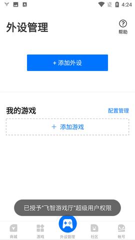 蓝牙与手柄连接后,进入飞智游戏厅的外设管理,开启按键映射,连接手柄。