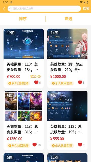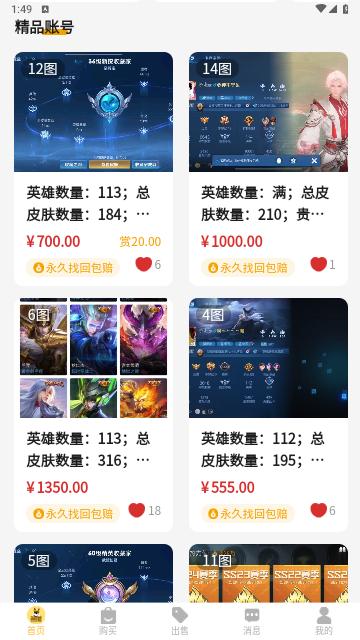 其中的游戏账号都是低价出售,让你可以使用低价就能购买到优质的游戏账号