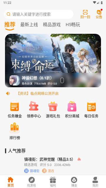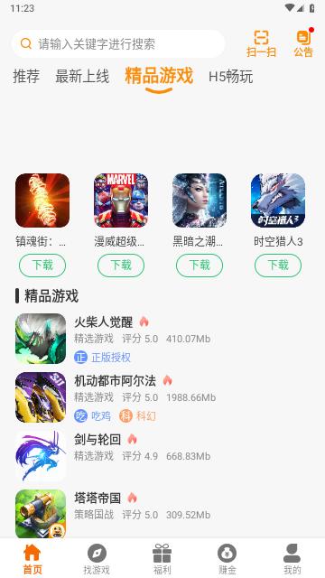 1、手机软件内游戏很多,并且立即升级,想玩什么游戏游戏立即点一下就可以免费下载开局。