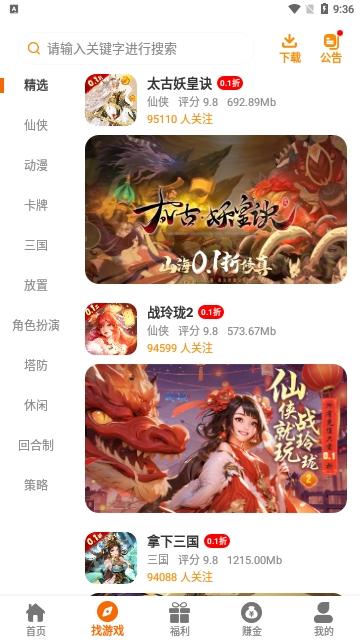 2、无论是竞技类游戏还是休闲益智类游戏,都能在平台上找到,而且还可直接下载体验。