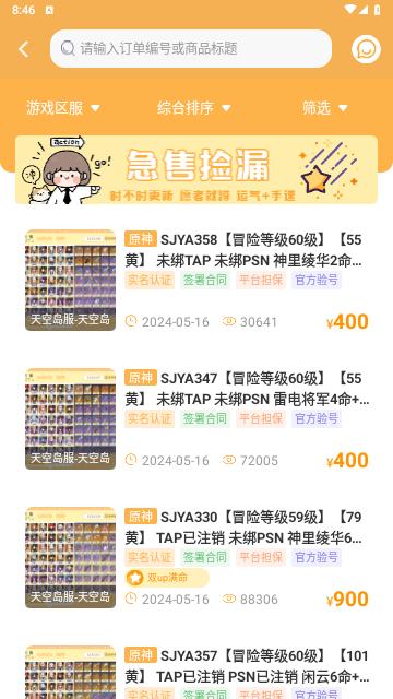 海量优质游戏账号随心挑选,平台官方权威验号,保证号源真实性安全性,专属信息一览图赏心悦目,方便快捷挑选心仪账号。每日大量上新,首页更有热门游戏账号超值推荐,超多新人活动不容错过,各种低价捡漏活动买得划算。